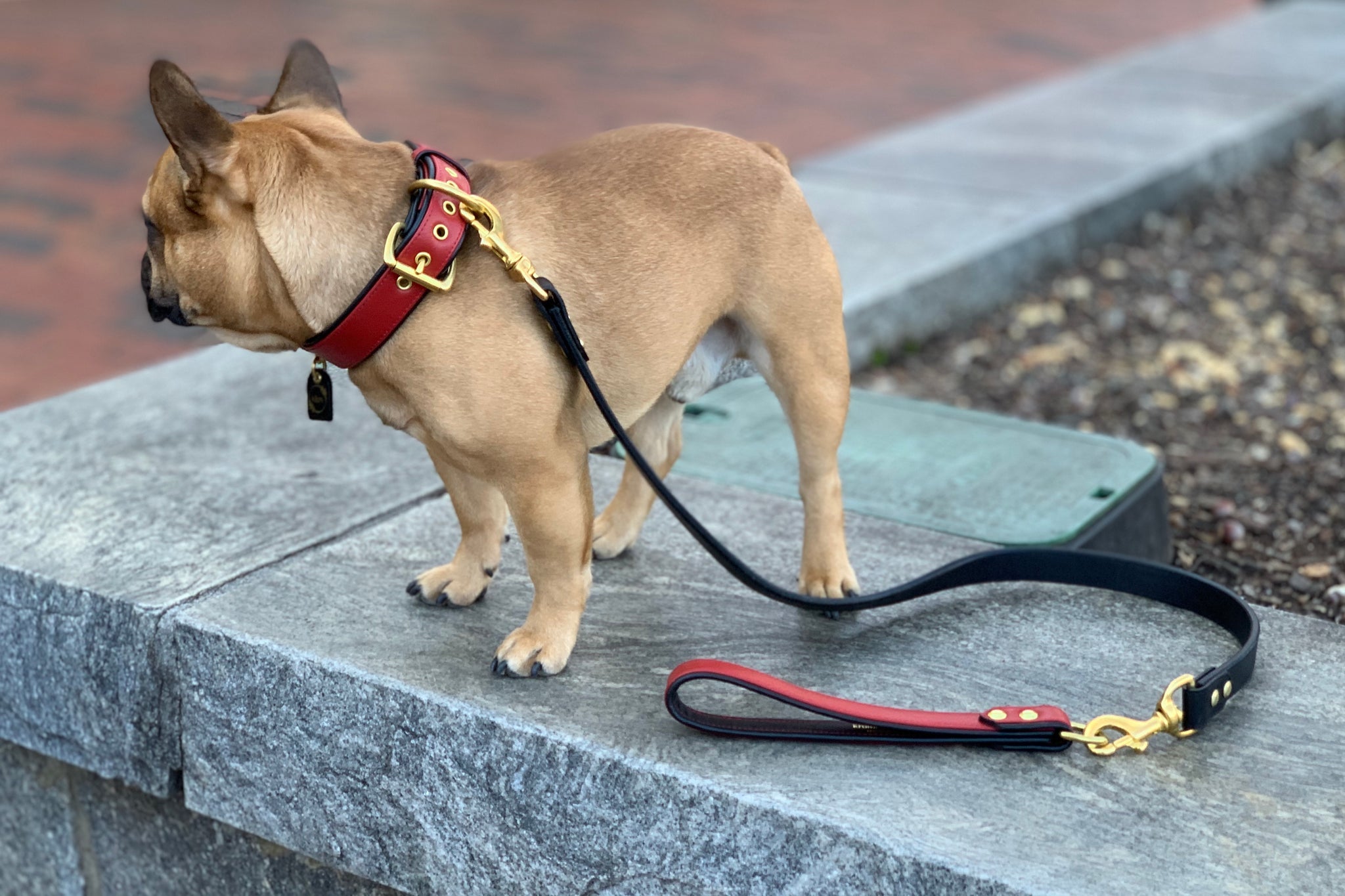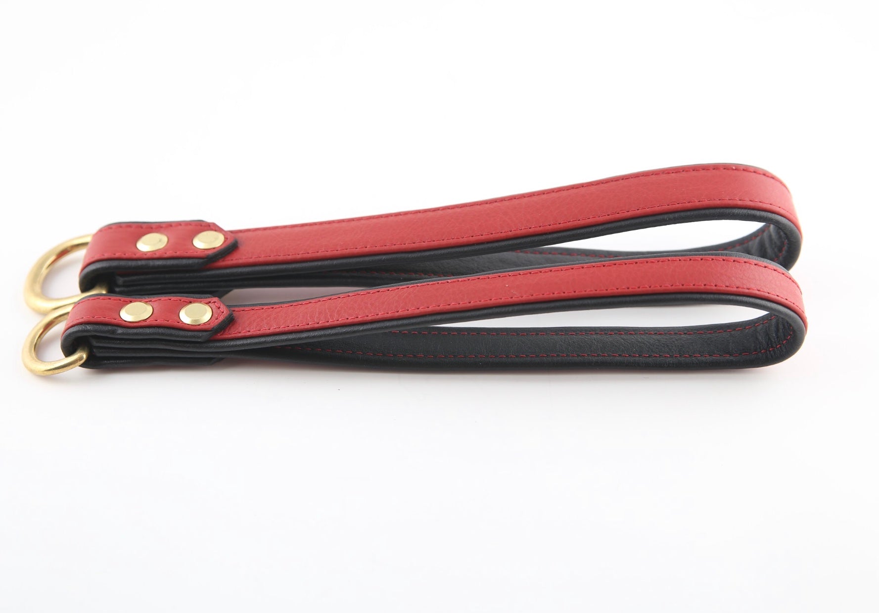 The Athens Grip is an incredibly versatile accessory and is a favorite amongst many. The Grip, *not sold individually, pairs perfectly with any collar and, when paired with one of our leads, functions as a 5-foot leash. For dog owners with multiple dogs, the Grips allow up to four leads to be snapped on simultaneously, streamlining the dog-walking experience. Crafted from a double-layer of supple yet durable crimson red & midnight black leather and accentuated with solid brass, the Grips boast both form and function.